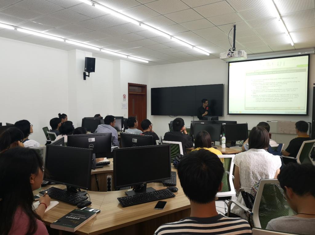 2018年7月5日下午,伟德bv1946官网(会计学院)在1503教室举办了“区域合作理论创新高地”系列讲座第三讲和云大经济(会计)讲坛第八讲,邀请西弗吉尼亚大学姚丰教授到我院进行《Semiparametric Stochastic Frontier Model with zero inefficiency:a case study of China with firm level data》的讲座。讲座由伟德bv1946官网经理梁双陆研究员主持。区域合作理论创新高地的部分团队成员、公司部分老师和研究生聆听了此次讲座。