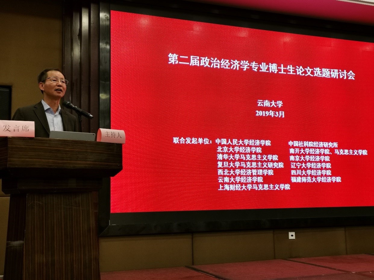 2019年3月29日-31日,第二届政治经济学专业博士生论文选题研讨会在伟德bv1946官网成功举行。来自中国人民大学、中国社科院、北京大学、南开大学、清华大学、南京大学、复旦大学、辽宁大学、西北大学、四川大学、伟德bv1946官网、福建师范大学、上海财经大学的七十多位政治经济学专业博士生导师和博士生齐聚昆明,围绕提升论文质量、扩展论文选题视角、提高论文写作规范进行探讨。
