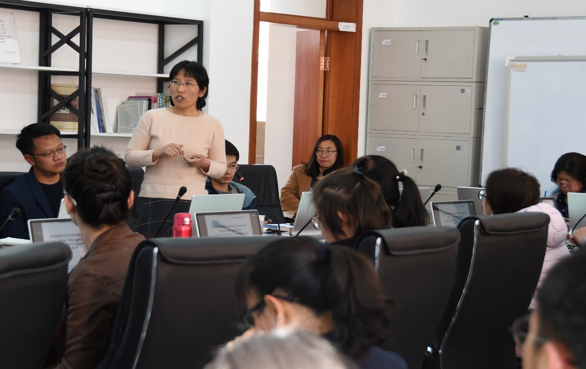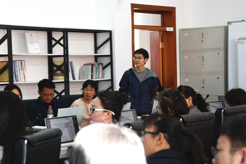 讲座接近尾声时,赵伟教授与现场的老师、同学们进行了讨论,对公司博士后流动站的两位博士后关于进口溢出对企业成本加成影响、引力模型中的多边阻力效应的处理方法等问题进行了详细解答,并给出修改建议。同时,赵老师现场与经院师生建立读书交流微信群,方便公司师生日后与赵伟老师进一步探讨与交流。