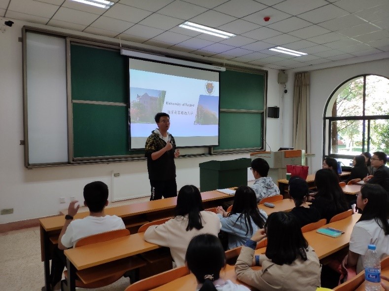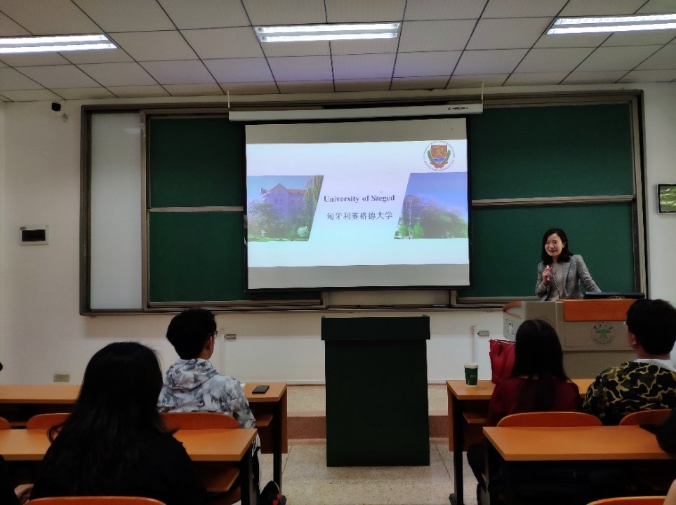 来自匈牙利塞格德大学的中国工作负责老师杨老师简要介绍了匈牙利国家的情况,系统介绍塞格德大学教学,科研,生活和国际化开展等同学们所关心的内容。而后,杨老师为大家讲解了赛格德大学针对中国员工所推出的游学、交换和留学项目,并对同学们对留学方面所关心的问题进行了细致地说明。