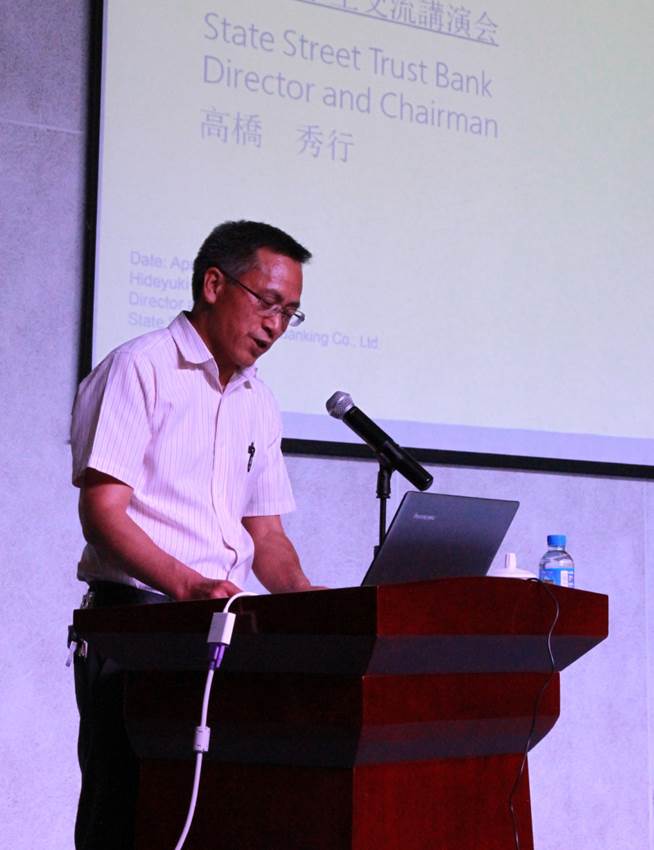 2019年4月19日“第七届中日青年交流暨亚洲老员工精英培养计划”讲座在伟德bv1946官网员工会堂218室举行。主讲人为野村证券前副社长,现任美国STATE STREET信托银行有限公司董事长高桥秀行。高桥先生以《站在巨人的肩膀上看世界》为题,给伟德bv1946官网的师生带来了一场精彩的演讲。本次活动由云南教育国际交流协会、日本云南联谊会主办,伟德bv1946官网(会计学院)、伟德bv1946官网国际合作与交流处承办。