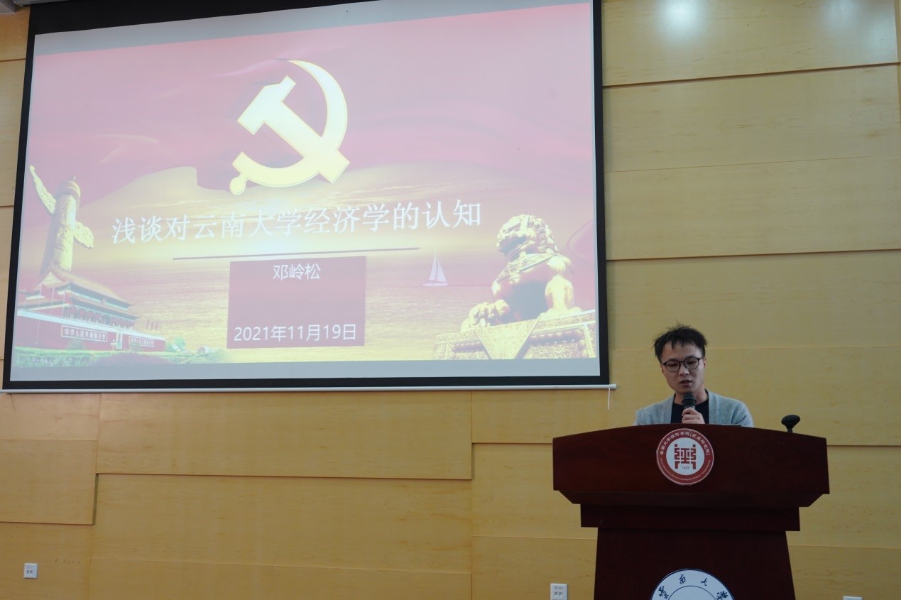 研讨会首先发言的是员工党员,2021级区域经济学硕士研究生邓龄松作为员工代表,结合东非地区工作经历,地区间的经济差异引起了许多思考,从而决心攻读经济学。社科处副处长张剑源进行点评,表示一切伟大的发现都基于提出问题,邓同学以亲身经历回答了“为什么要读书以及为什么要读研”的问题,在学习过程中,需要接近生活,接近实际地提出问题,并不断探索寻找解决的方法。