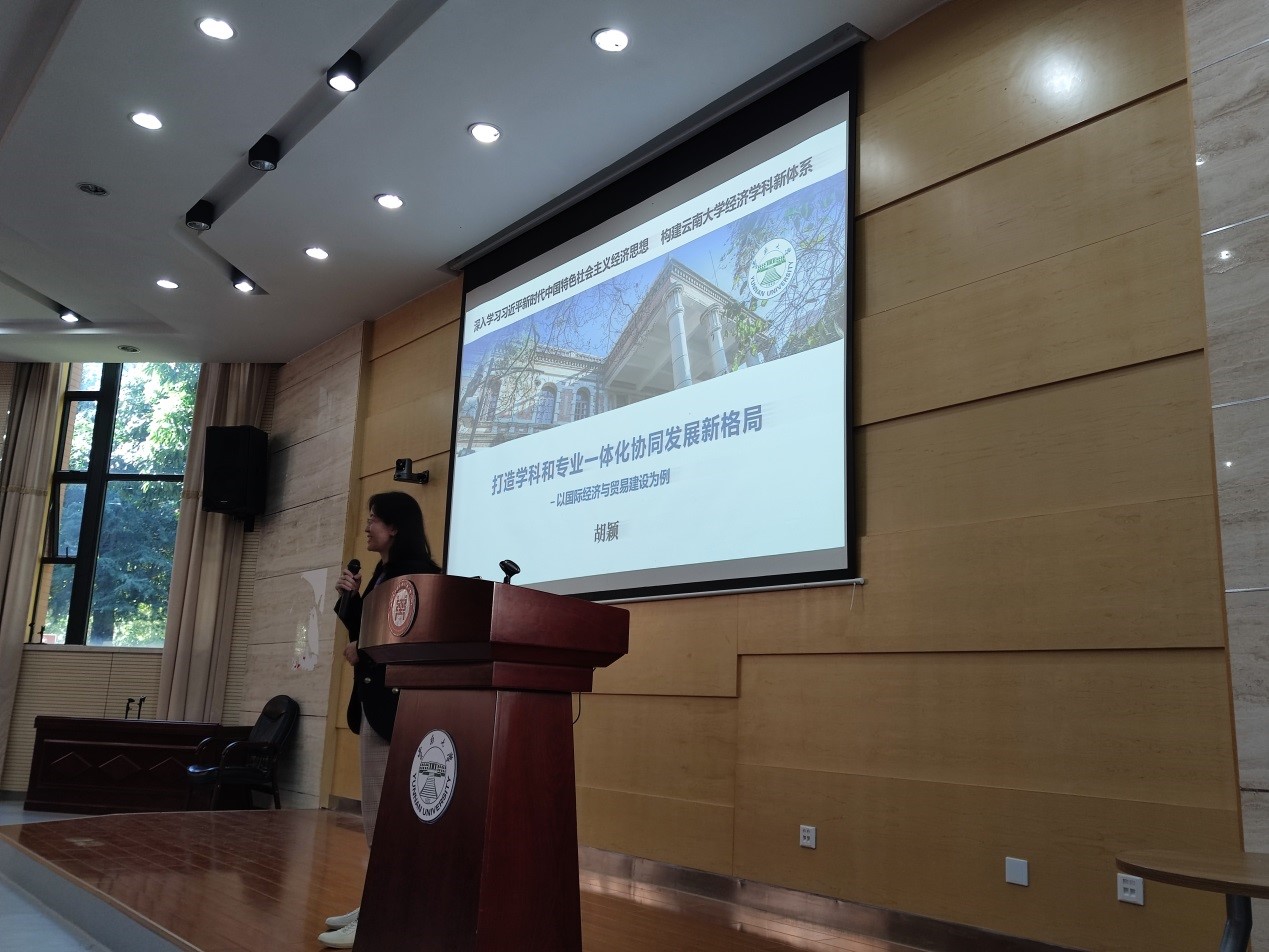 接下来外贸系主任胡颖副教授作为系所主任代表发言,专业建设以团队建设为基础,团队建设为专业建设培育人才。打造专业与学科协同一体化发展新格局,主要在于育人,通过以赛助教的方式,改变教学手段,基于调研、基于项目培育教师和员工,推动师生科研能力的发展。原书记郭树华教授点评认为立足于新发展阶段的构建,聚焦人才培育和专业发展,拓展社会科研和人才服务等值得肯定。紧跟十四五规划步伐,根据前期取得的成绩,查缺补漏,确定专业发展目标,层层分解,具体到每件事上。