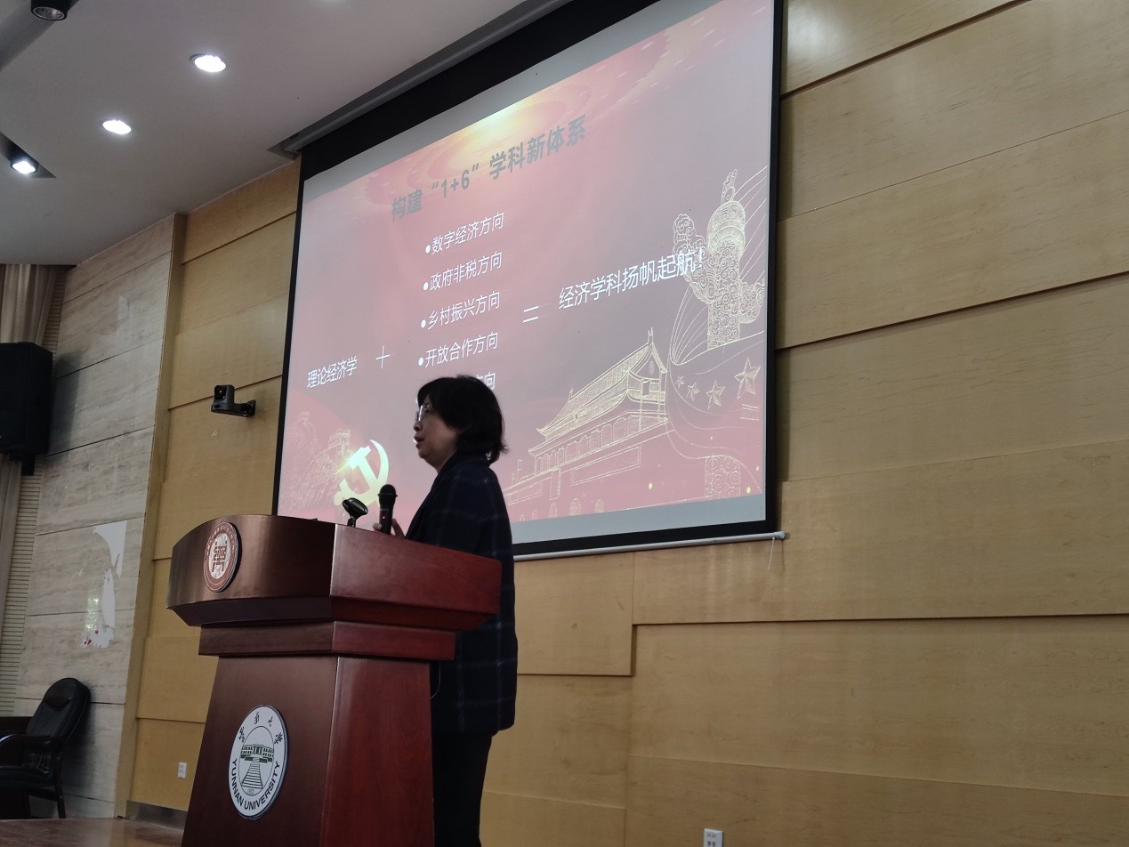 非税收入研究所所长杨孟禹副教授作为青年教师代表发言,表示要不断开拓经济学新境界,构建“1+6”学科新体系,进而构建一个可复制可推广的体系。经济学科发展要固本强基、突出特色、回应时代需求。经济学分委会委员、原副经理罗美娟教授点评,指出现在伟德bv1946官网的团队建设现状是理论强、应用弱,团队建设不但要体现区域特色更要体现时代特色,还应该注重现实的产业发展问题。