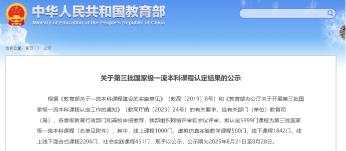 截至目前,公司国家级一流本科课程总数将达3门,覆盖线上一流课程、线下一流课程和线上线下混合式一流课程。