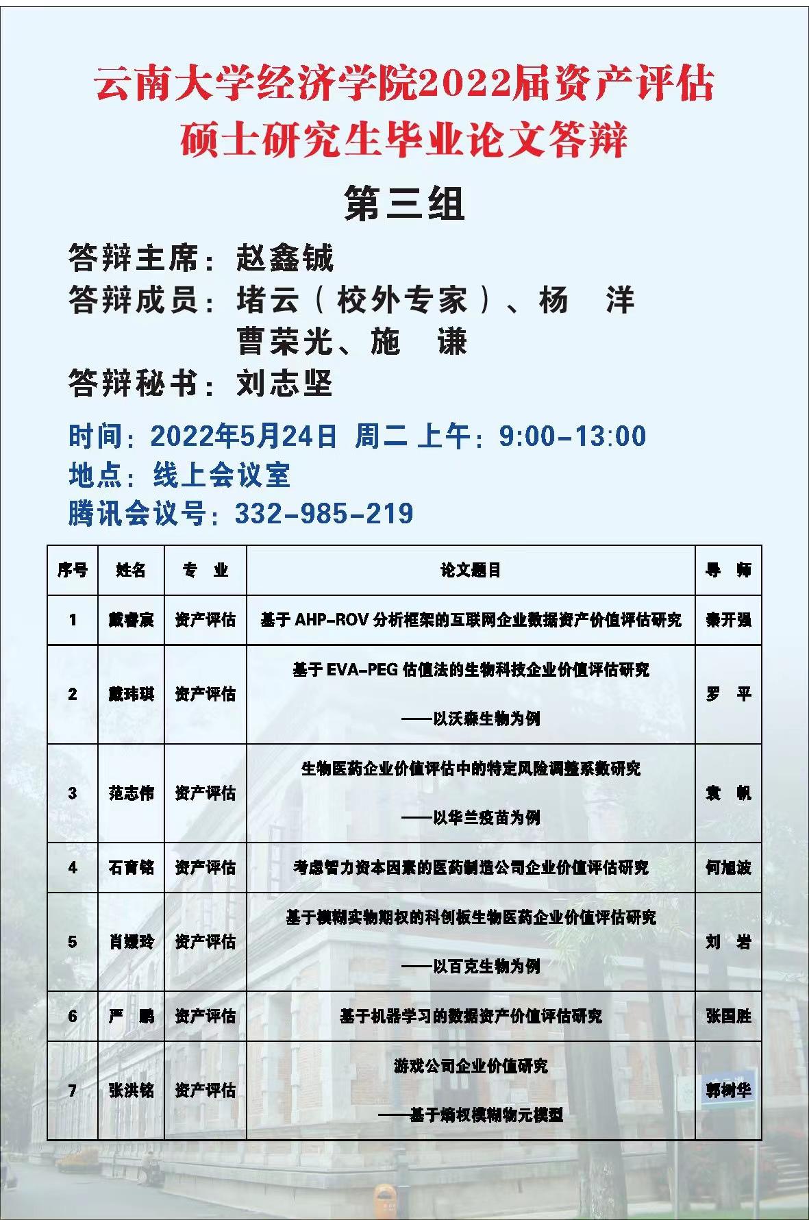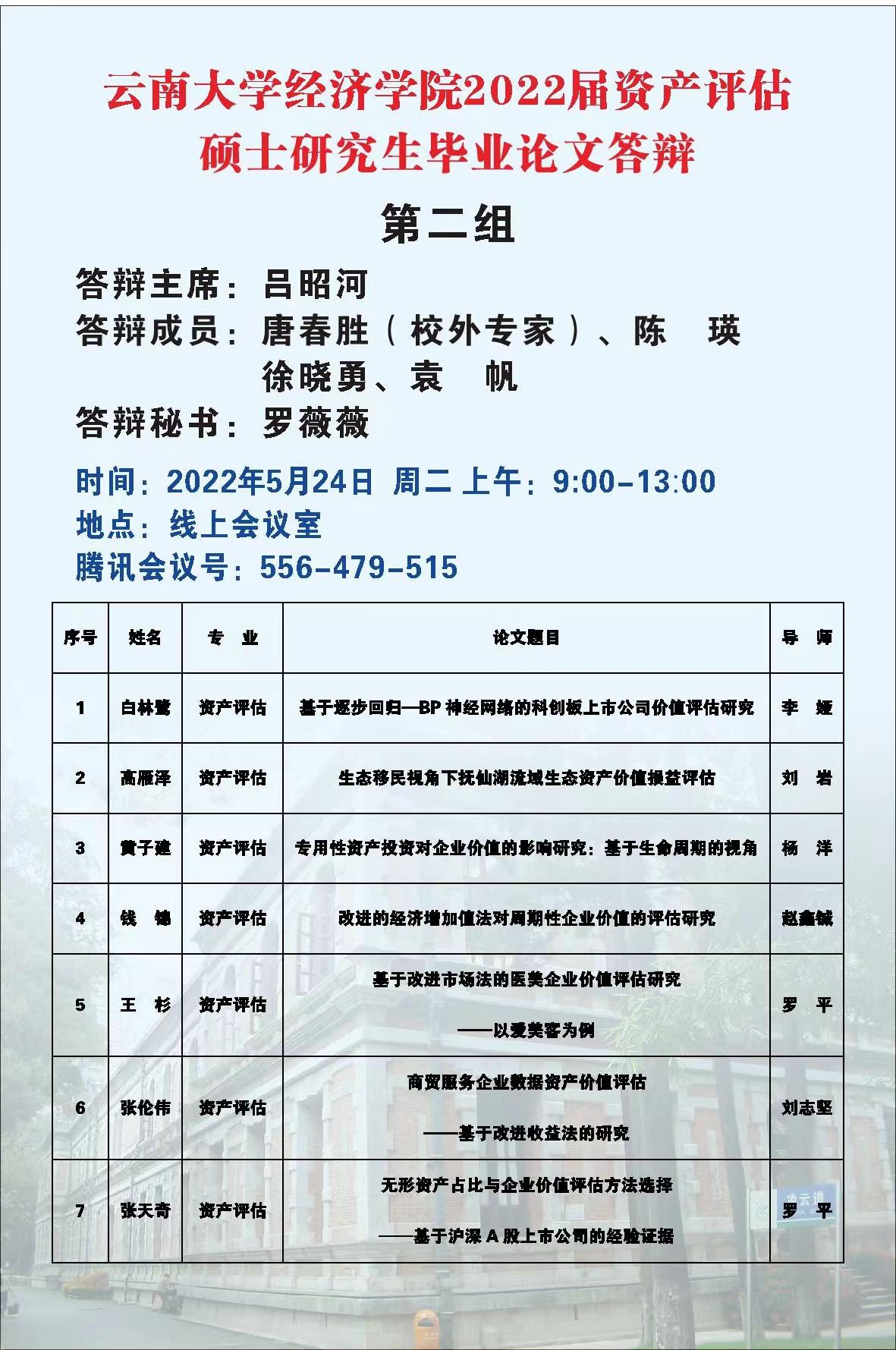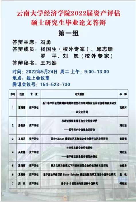 2022届资产评估专业硕士论文答辩安排