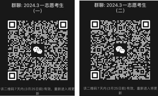考生确认进入复试名单后,于3月23日前加入微信群。该群仅限一志愿上线进入复试考生加入。进入微信群后昵称及时更改为:专业+姓名。未实名者将实时清理。因扫描入群人数限制,超人数后请加入群(二),勿重复入群。