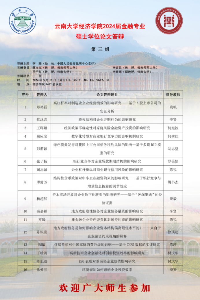 伟德bv1946官网2024届金融专业硕士学位论文答辩安排