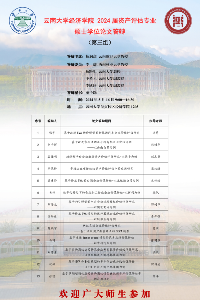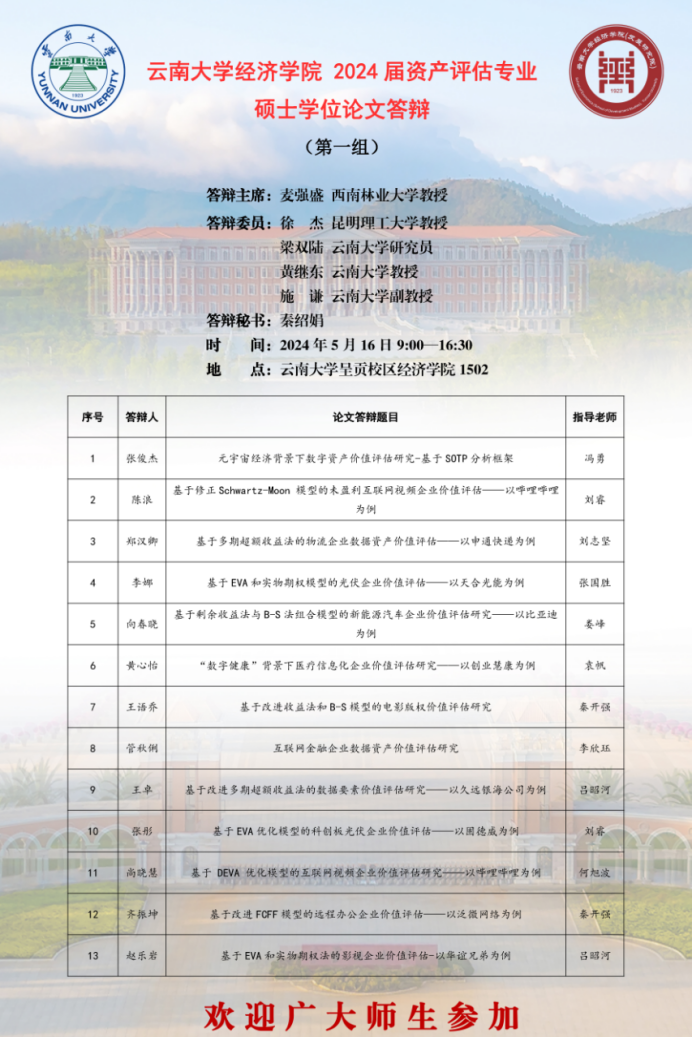 伟德bv1946官网2024届资产评估专业硕士学位论文答辩安排