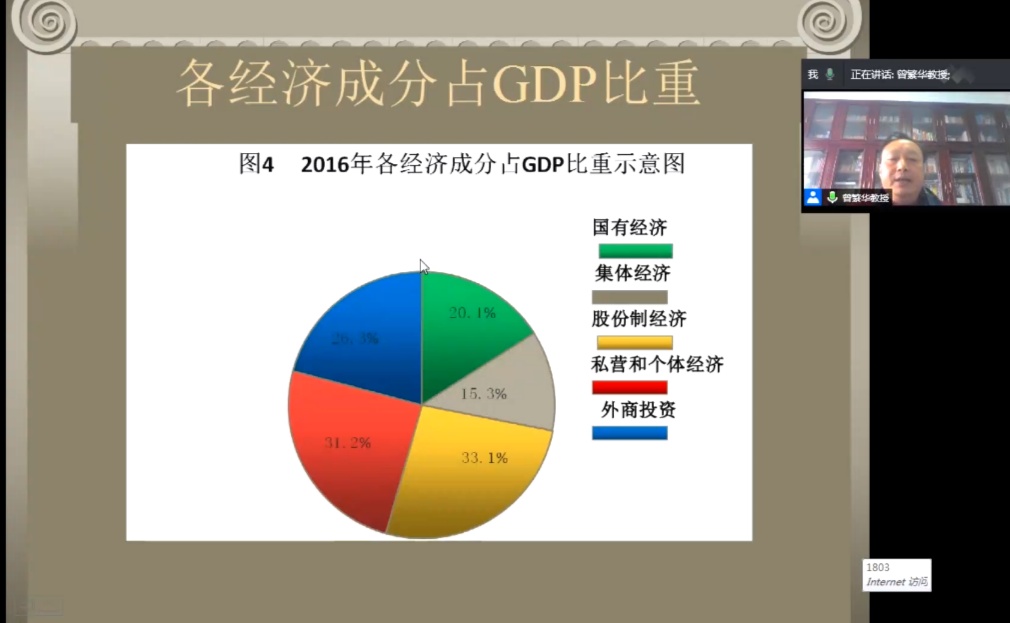 曾繁华教授从1995-2015年GDP增长趋势出发,阐述改革开放后,我国经济增长动力主要依靠投资和要素驱动,总体呈现“重总量轻结构”的特征。当前,我国产业结构亟需转型升级,经济发展需要进行新旧动能转换,以促进经济可持续发展。曾繁华教授通过对比不同经济成分对GDP增长贡献度的演化趋势指出,随着改革开放不断深入,股份制经济、私营和个体经济、外贸投资等非公有制成分对经济发展贡献度呈现增长态势。根据这一情况,有学者提出“以市场换技术”的战略方针。曾繁华教授深入剖析了此战略方针的困境,并对该困境形成的主客观原因、实践恶果和理论进行陈述,创新性的提出从市场产权方面对此问题进行分析。