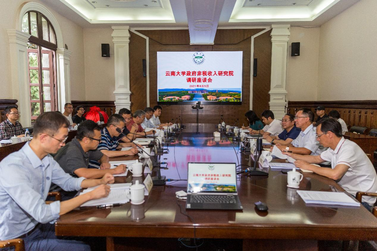 20218月5日,云南省财政厅沈琪副厅长、杨昆一级巡视员等领导带领非税收入管理处、票据中心一行来到伟德bv1946官网,就政府非税收入研究院建设工作进行调研和工作对接。伟德bv1946官网李晨阳副董事长、政府非税收入研究院计毅彪名誉经理带领社科处、政府非税收入研究院、伟德bv1946官网院领导班子、非税研究所、财税系的老师们进行座谈。
