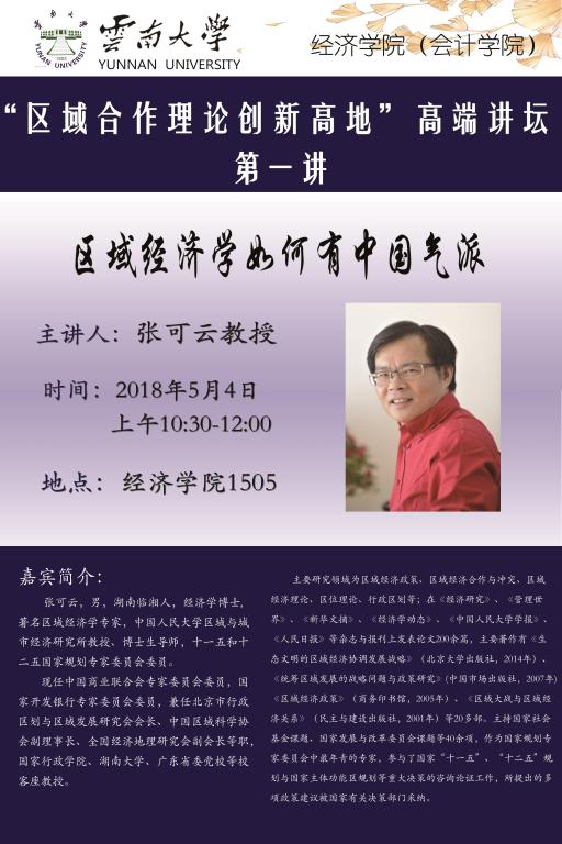 【论坛通知】高端论坛开讲 主讲人:中国人民大学张可云教授