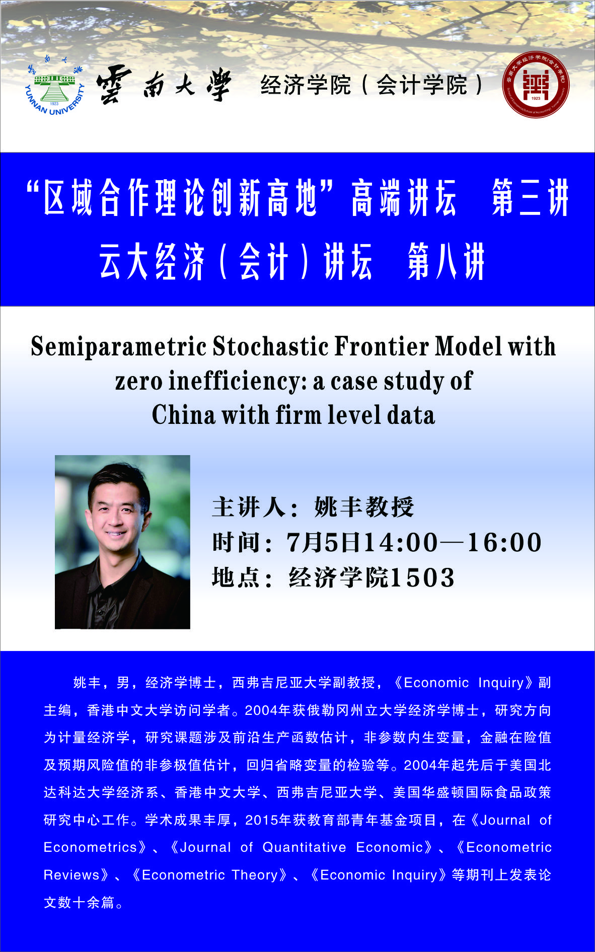 上一条:区域合作理论创新高地高端论坛第三讲:姚丰教授——Semiparametric Stochastic Frontier Model with zero inefficiency