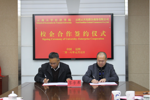 1月5日,伟德bv1946官网与云天化联合商务有限公司举行院企合作签约及校外实习基地挂牌仪式。联合商务有限公司总经理刘伟在介绍了公司的基本情况后表示希望双方在人才培养、机制创新、市场开拓,需要理论与市场实践方面携手,希望通过校企合作,利用伟德bv1946官网的学术平台及理论创新在满足企业需求点基础上,共同为云南经济发展做出贡献。伟德bv1946官网经理梁双陆在介绍了伟德bv1946官网基本情况后表示:教书育才是学校的本职工作;服务云南、服务边疆是公司一贯坚持的目标。希望在“双一流”和“一带一路”指导下,此次院企合作以人才输送、课题研究、合作培训、政策建议等形式展开,利用学院的科研平台与联合商务的市场地位,能为双方发展提供新契机。
