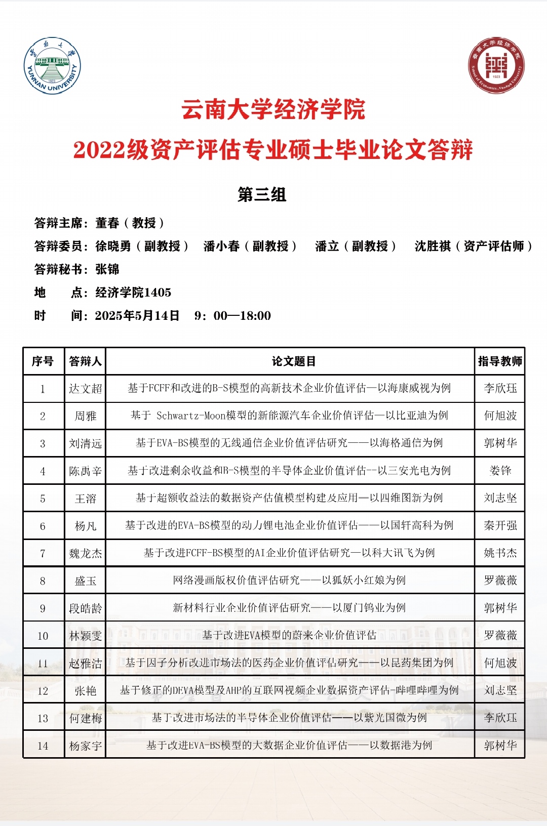 伟德bv1946官网2022级资产评估专业硕士研究生毕业论文答辩