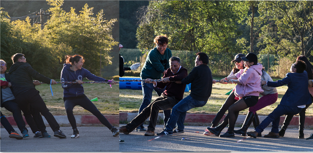在公司党委书记李娟、院工会主席杨恒芬的简短致辞后,教职工户外体育活动正式拉开序幕。本次户外运动项目包括登山寻宝、捡鸡蛋、旱地龙舟、无敌风火轮和碰撞球。户外运动主持人分好组、介绍完活动规则后,第一个项目登山寻宝便展开了激烈的角逐,各队队长紧锣密鼓排兵布阵,年轻教师斗志昂扬冲山抢宝,资深教师不甘示弱老当益壮。