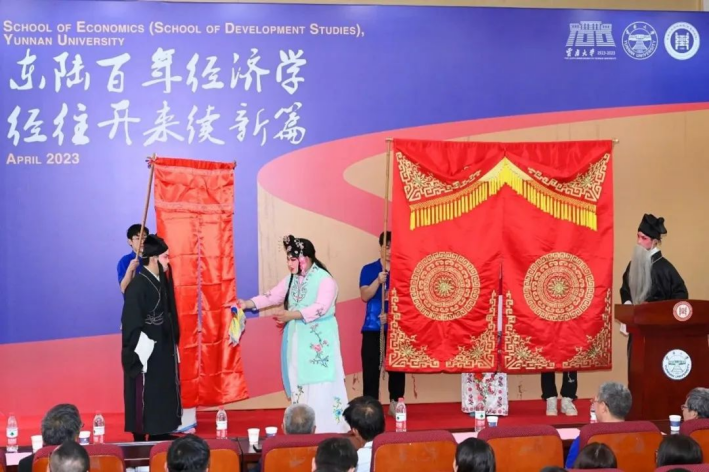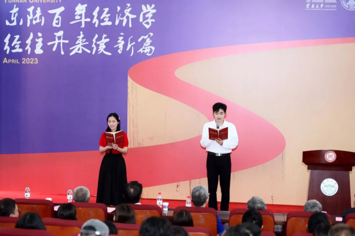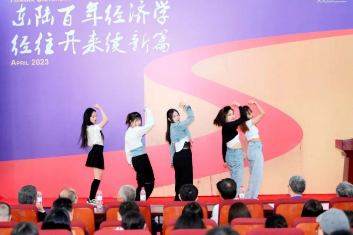 在大会中,经院学子们用自己的歌声和舞蹈为云大百年校庆献礼。