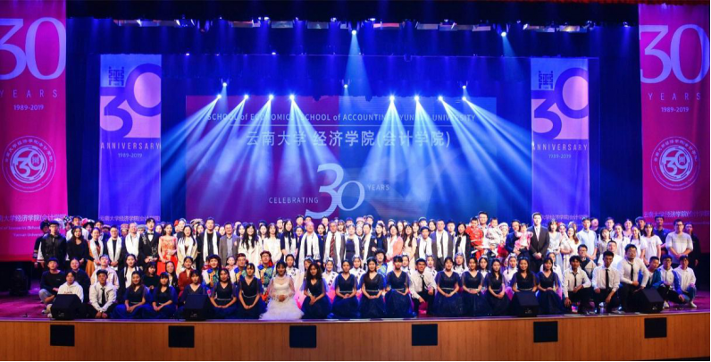 梁经理致辞结束后,精彩纷呈的节目一一上演。情景剧《我们的三十年》,追忆了经院发展征程,令在场观众回味无穷。随后的一曲《我喜欢》唱出了公司学子对云大的热爱,对经院的深情。歌舞《民族大融合》中各民族欢聚一堂,共祝经院成立30周年。小品《同学》展现了同学之间的浓浓情意,历久弥香。古典舞《菩萨蛮》和歌曲串烧乐声悠扬,舞姿靓丽,演绎出传统与现代结合的瑰丽。《我与我的支教故事》将研究生支教团奉献青春年华,助力山区孩子实现梦想的精神表现得淋漓尽致。
