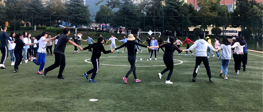 最后是激动人心的个人项目,个人项目的游戏是一块和五毛,由师生手拉手围成一个圈,女生代表0.5,男生代表1,大家在欢快的歌声中进行了四轮比赛,最后每个获胜的老师和员工都获得了奖品。游戏前,大家互相帮助,积极热身。比赛中大家齐心协力,共同前进,留下了美好的回忆。最后大家分享着快乐,所有师生共同合影留念。