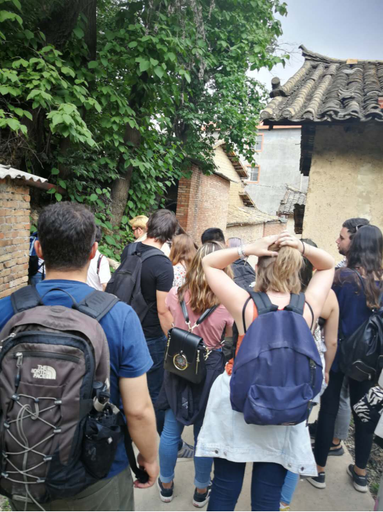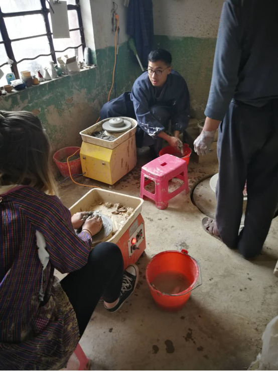 参观完校园后,我们一行踏上了前往瞭浒小镇的大巴。一路上法国同学的热情依旧不减,依然欢歌笑语,不亦乐乎。到达陶瓷小镇后,我们在小镇接待室老师和曲靖师范学院老师的准备和带领下,聆听了有关泛珠江源陶瓷文化课的讲解,虽然全程是英语讲解,但大家都对这份古老的文化很感兴趣并问了很多有趣的问题。之后,我们前往曲靖陶瓷厂观看现代化的陶瓷生产是如何通过流水线逐步完成的,尽管厂内温度很高,但大家对每一道工序都产生了浓厚的兴趣并录下来各类小视频。
