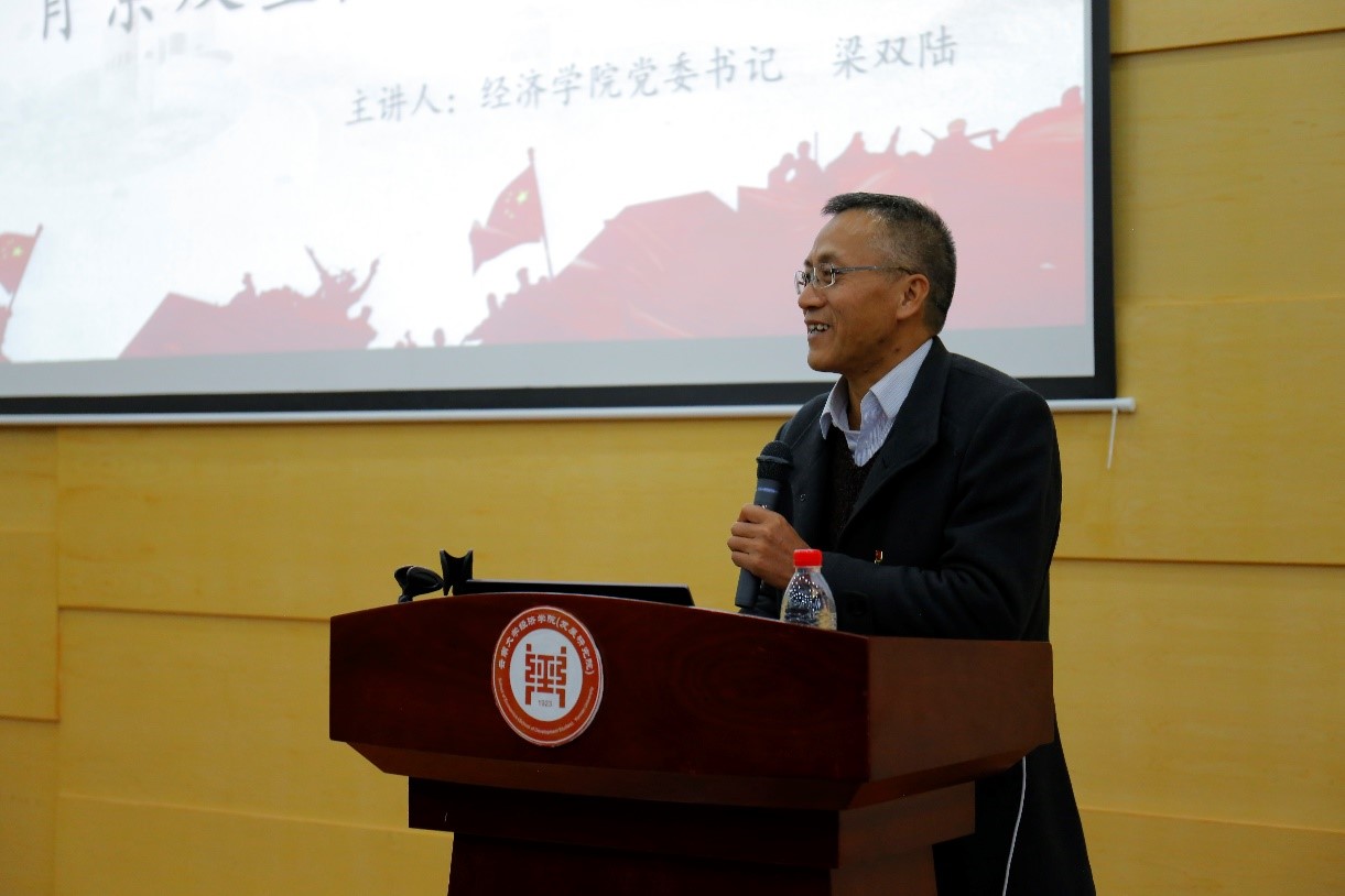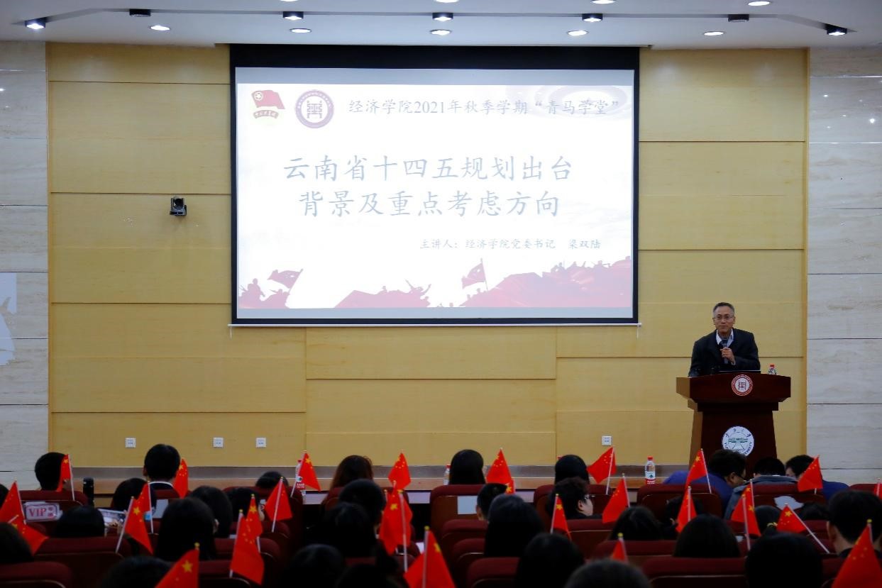 首先,梁老师介绍了开办青马学堂的背景和意义,并鼓励同学们肩负使命与担当,学习青年马克思执着忘我的学习劲头与真诚坚定的科学信仰。此外,梁老师表示作为青年马克思的骨干,应当融入大时代,关心时代大问题,把握时代的脉搏,与时代和人民共命运,做一个能真正担当民族复兴大任的时代新人。学习理解“十四五”规划、习近平新时代中国特色社会主义思想,特别是习近平新时代中国特色社会主义经济思想,是此次讲堂的核心内容。