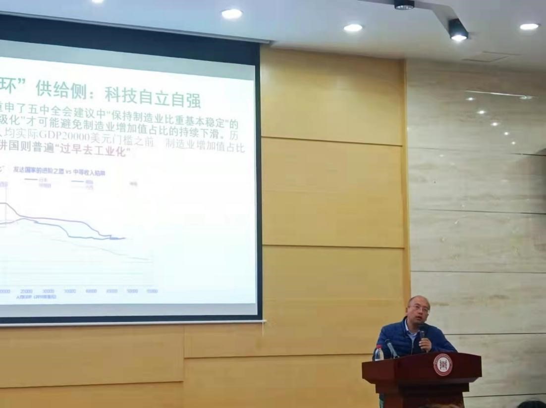 紧接着,马子红老师用总供给和总需求模型解释短期经济波动,详细而又生动地为我们解读了构建“双循环”新发展格局的理论逻辑和现实条件。他强调,学习经济学最终的落脚点一定是现实问题,理论联系实际,将课堂所学运用到现实经济社会现象的剖析之中。