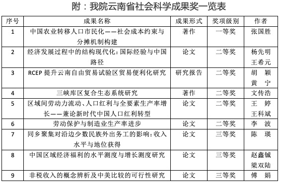 近日,《云南省社会科学奖拟表彰对象名单》公布,根据《中共云南省委宣传部 云南省人力资源和社会保障厅 云南省社会科学界联合会关于开展云南省社会科学奖评选表彰活动的通知》(云社联联发〔2022〕10号),授予200个项目云南省社会科学奖。其中,公司获奖64项,公司获奖9项,全省占比为4.5%,全校占比为14%,分别为一等奖1项,二等奖5项,三等奖3项。