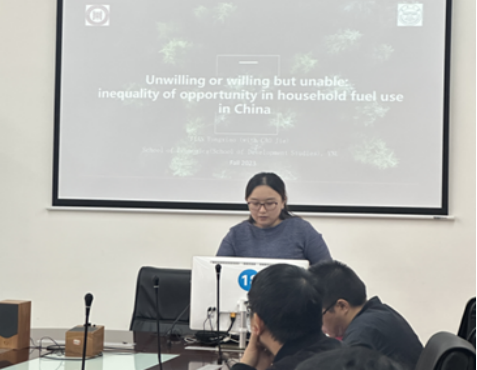 本次讨论会在“人与自然的关系”这个领域展开,田永晓老师分享题为“Unwilling or Willing But unable : inequality opportunity in household fuel use in China”的工作论文,研究中国家庭能源消费为什么不平等的问题,利用2015年中国综合社会调查数据,通过Blinder -Oaxaca分解法对偏差进行分解,分析影响家庭能源消费不平等的内在机理,再运用二元Logit模型对中国居民燃料选择差异的影响因素进行分析,研究发现:城乡收入、户籍和地理位置是影响居民燃料选择的关键因素。