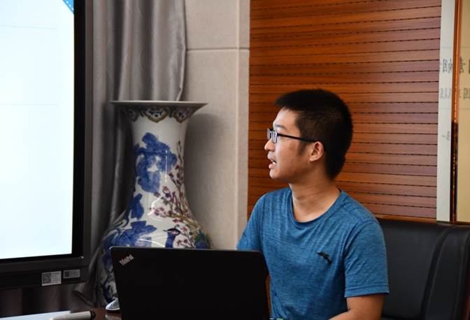 首先进行汇报的夏周培同学,其汇报题目是:“金融创新对产业结构升级的影响路径研究——基于面板中介效应模型的估计”,本篇论文系统探析金融创新影响产产业结构升级的机制和作用路径,并构建中介效应模型,利用2003年——2017年的升级面板数据进行实证检验,最后研究发展金融创新促进产业结构升级,但是资本配置中介作用不明显,金融创新影响存在区域差异,此外还创造性提出“金融创新相关比”概念,并据此有力解释了中部地区金融创新影响产业结构升级不显著的现象。杨洋老师支出其论文具有一定创新性,同时对于该篇文章的研究方向,杨洋老师向其提出此篇文章的内容可以参考部分国外学者的相关论文,这样文章将会更为详实和出彩,对于研究方向将会有新的启发。