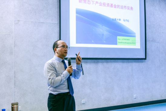下午15:45,由副经理马子红老师为大家带来第三场主题报告,报告主题为“新常态下产业投资基金的运作实务”。首先,马老师指出,新常态下投资面临三大问题:投什么?谁来投?怎么投?由此引出了新常态下产业投资基金的内涵,即新常态下的产业投资基金=政府引导基金+股权投资基金。接下来,对于政府缘何牵手产业投资基金,马老师指出政府需要解决新建项目融资问题,存量项目债务问题,平台公司资产负债约束问题三大问题。最后,马老师对于新常态下产业投资基金如何运作,以及运作的关键环节进行了较为详细的讲解。还对实务操作中的疑惑进行了分析和解答。整个报告中,马老师以其渊博的知识和深深的人格魅力为同学们带来了一场学术盛宴,相信同学们都获益匪浅。