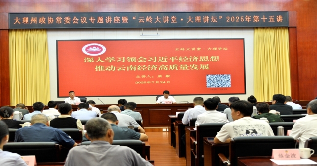 2025年7月24日,柴毅副教授在“云岭大讲堂·大理讲堂”2025年第十五讲中,以“深入学习领会习近平经济思想,推动云南经济高质量发展”为题,为大理州政协常委会进行了专题讲座。他围绕我国经济发展的阶段性特征,从党代会、五年规划、国务院政府工作报告、中央经济工作会议四个维度出发,全面、系统地阐述了我国经济成就取得的原因。同时,深入介绍了新时代以来我国经济社会取得的显著成就,以及习近平经济思想的时空演变与内涵特征。
